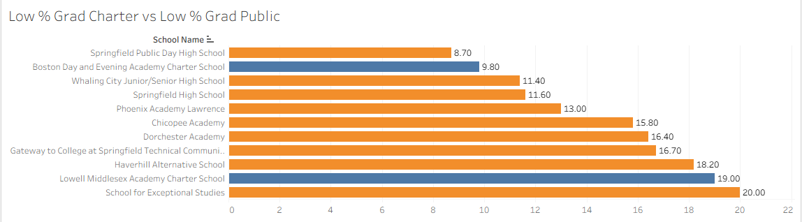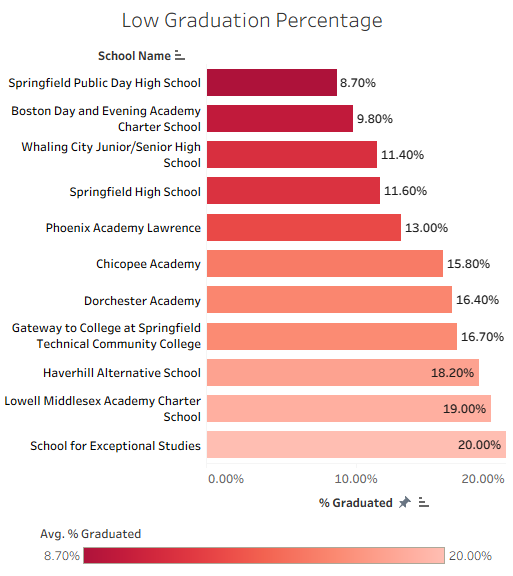 Even though these schools with low graduation percentages are all alternative schools, these findings could point the Massachusetts Department of Education in the right direction when it comes to assessing curriculums and teaching styles throughout the various schools.